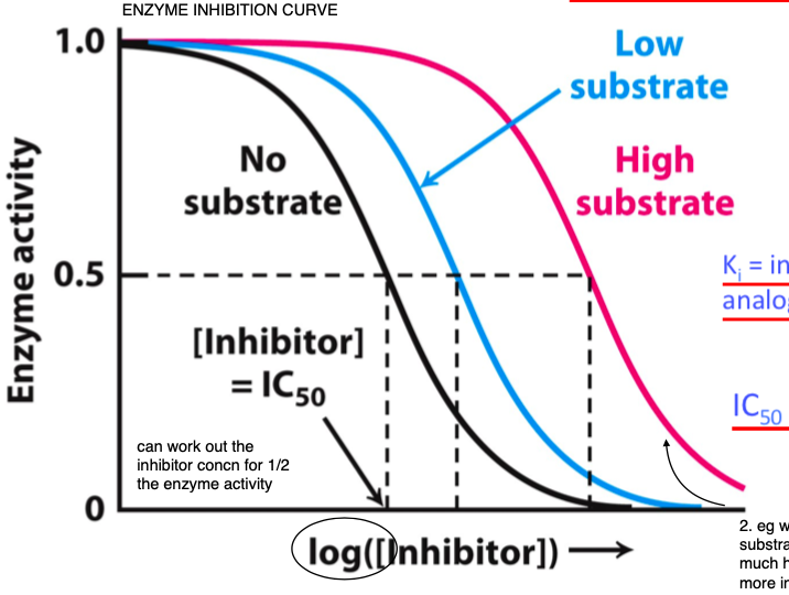 inhibitor concentration for a 50% decrease in enzymatic acitivty