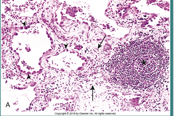 Interstitial fibrosis and chronic inflammatory cells (lymphocytes), interstitial pneumonia