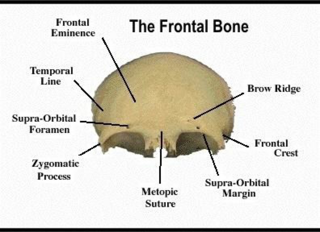 Supraorbital margin (ridges) (2) and supraorbital Foramen (2)
