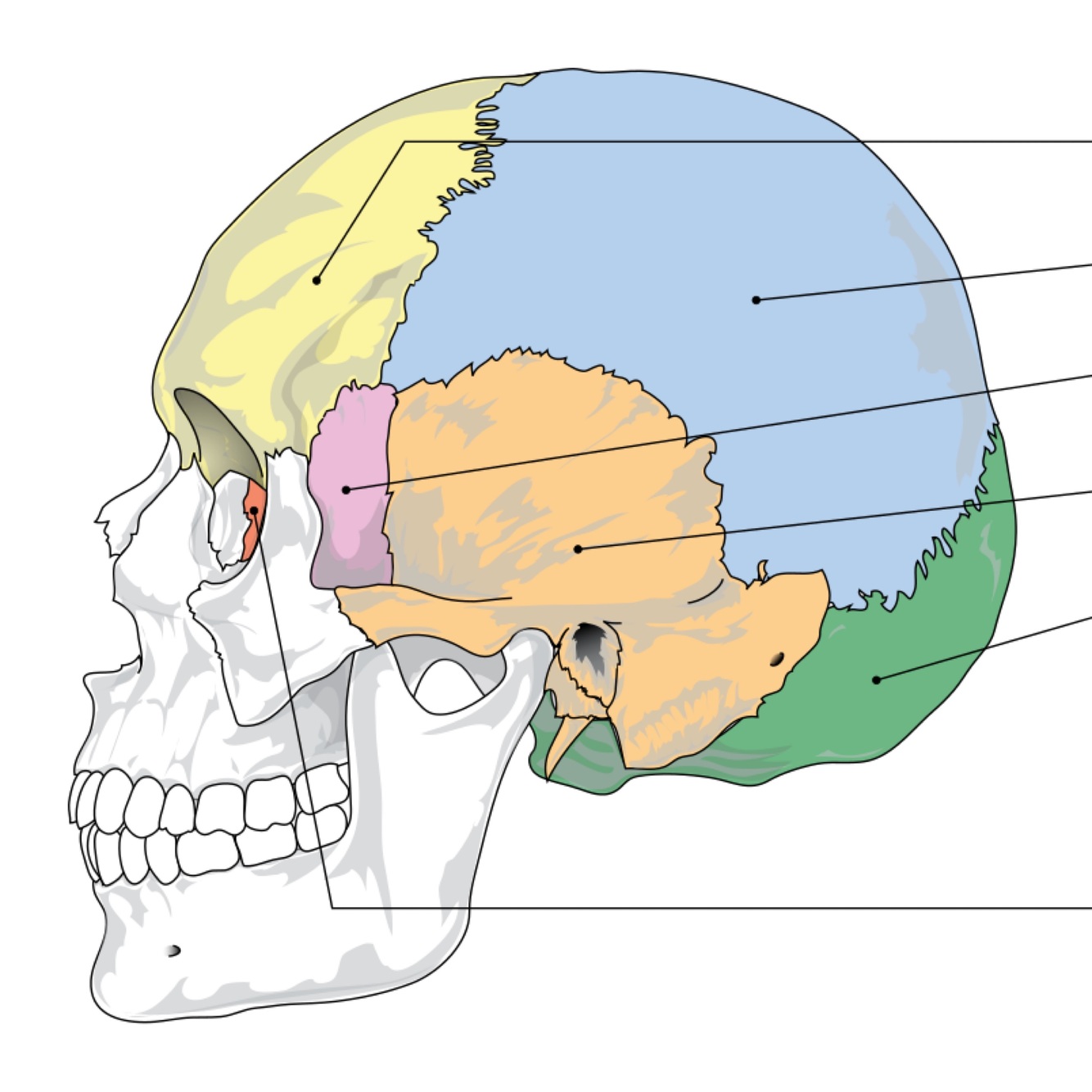 Body, sella turica, greater wing (2), lesser wing (2), pterygoid process, optic foramen (2), superior orbital fissure (2), foramen rotundum (2), foramen ovale (2)