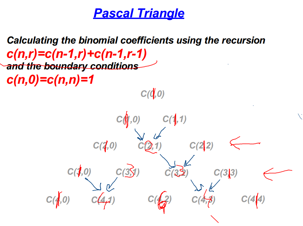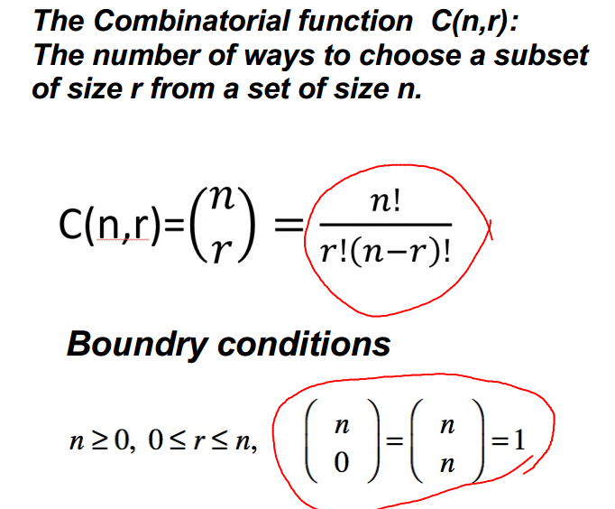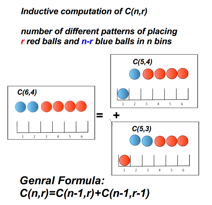 What is inductive computation of C(n,r) where r is the size of a subset from a set of size n? What is the general formula?