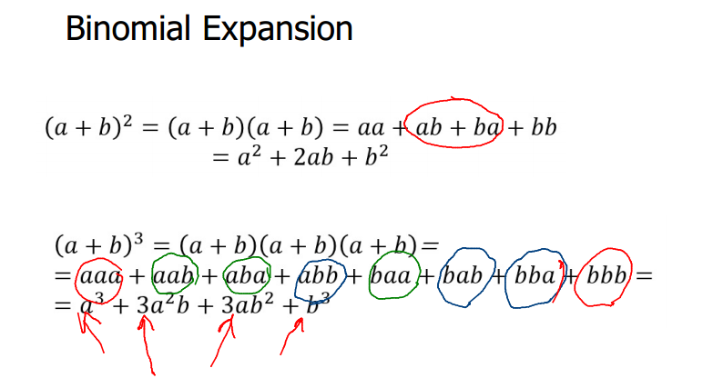 What is the binomial expansion of (a+b)2 and (a+b)3?