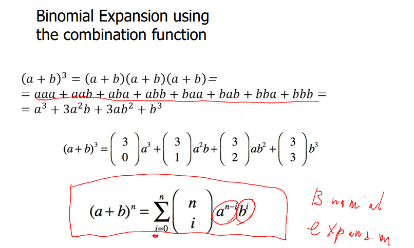 What is the binomial expansion equation sing the conbination function?