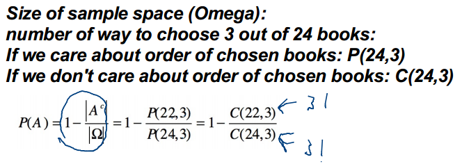 If you choose 3 out of 24 books at random, what is the probability that at least 2 would be next to each other?