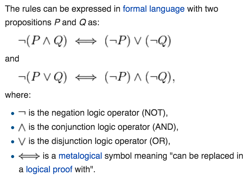 What is De Morgan’s Law for Sets?