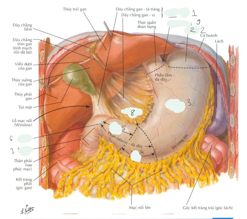 - Chiếm phần trên trái của khoang dưới đại trang ngang