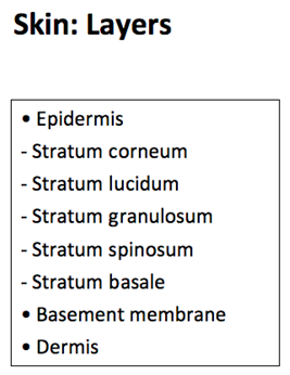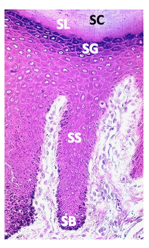 What dermal layer is made of stratified, squamous, and keratinized epithelium? What embryonic layer is it derived from and what does it contain?