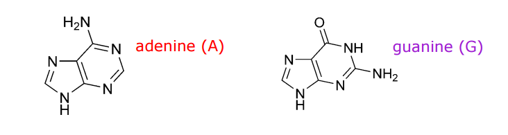 purines contain two carbon-nitrogen rings and four nitrogen atoms
