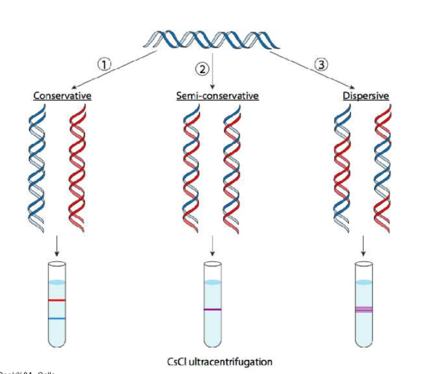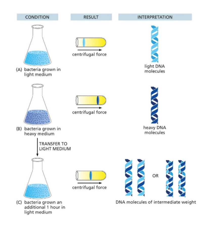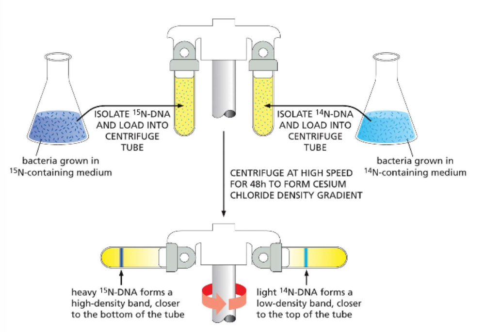 figured out by putting cesium chloride and centrifuged to see weight of the molecule (at different locations due to weight)