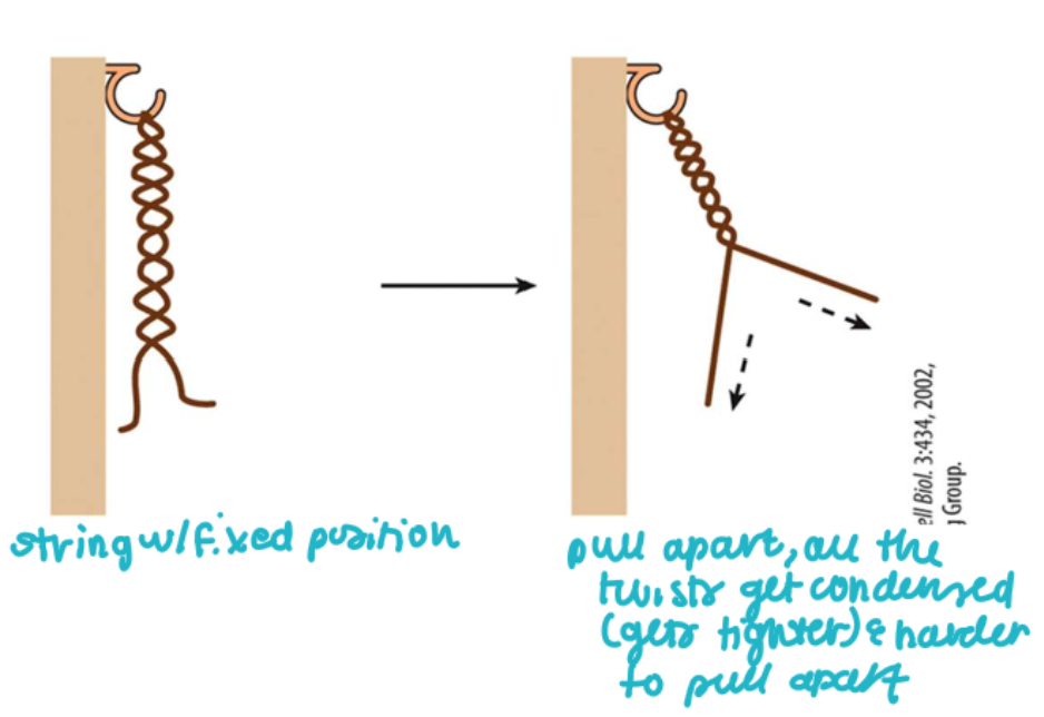 -as DNA strands are separated, the unseparated portions become more tightly wound
