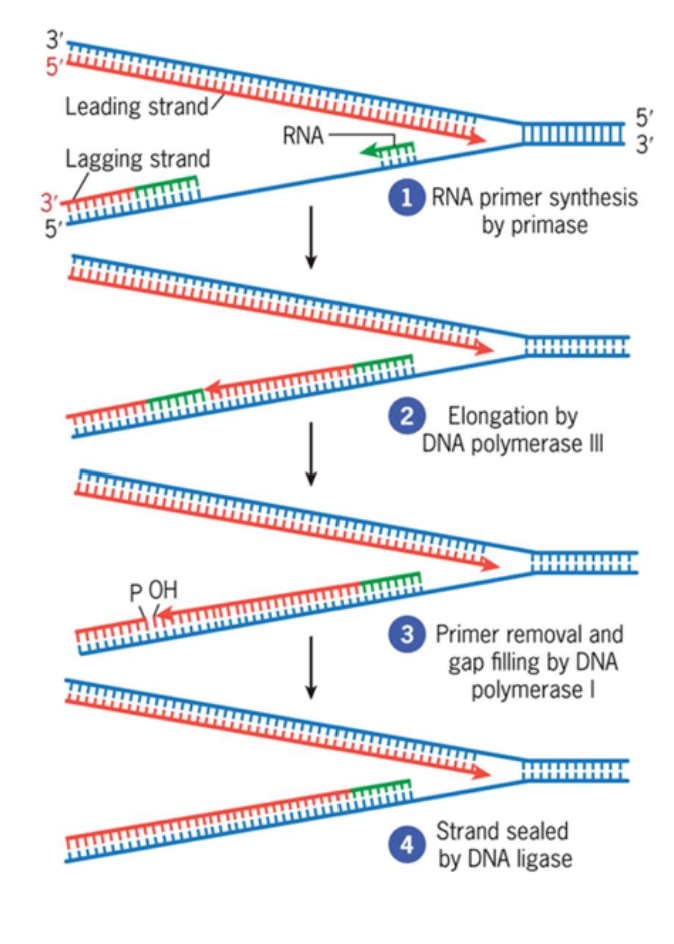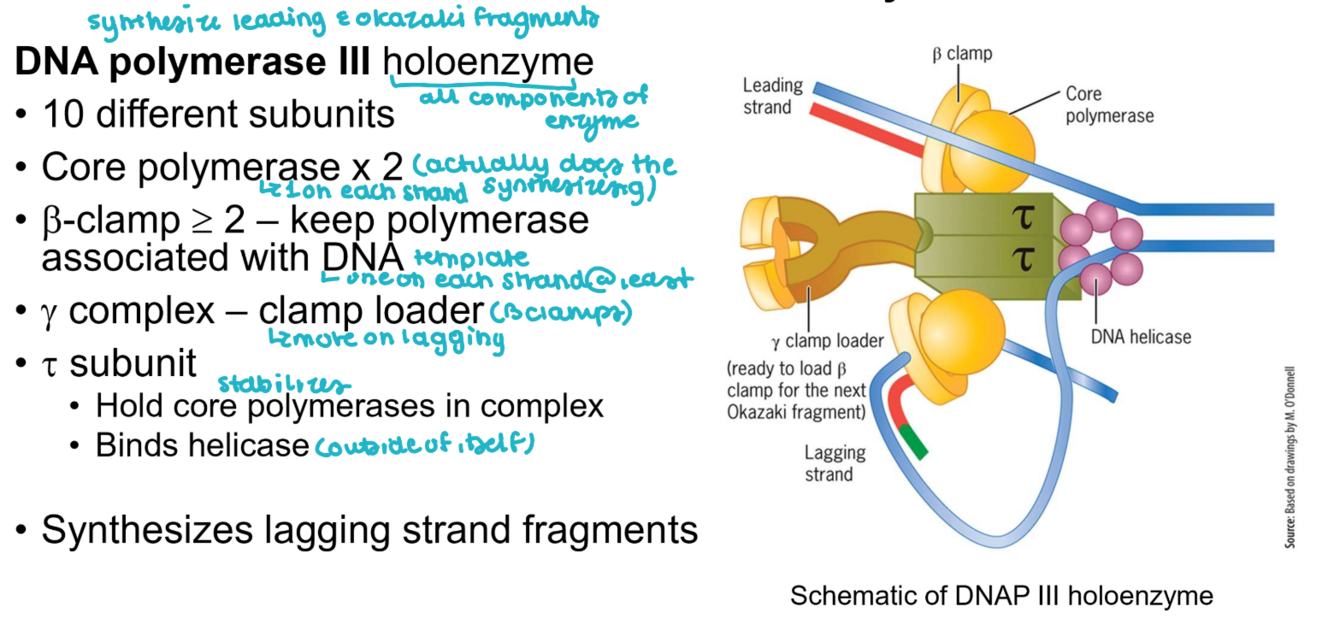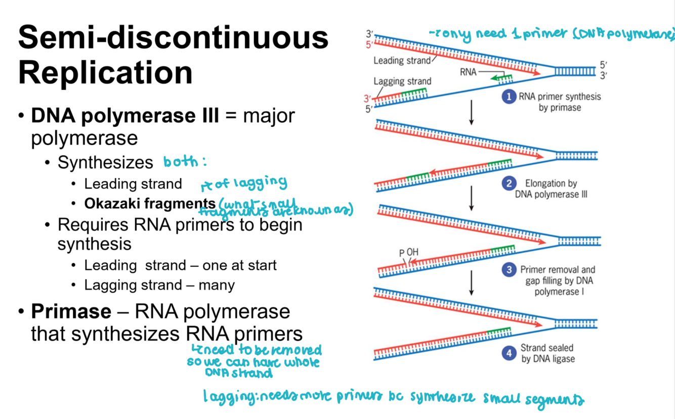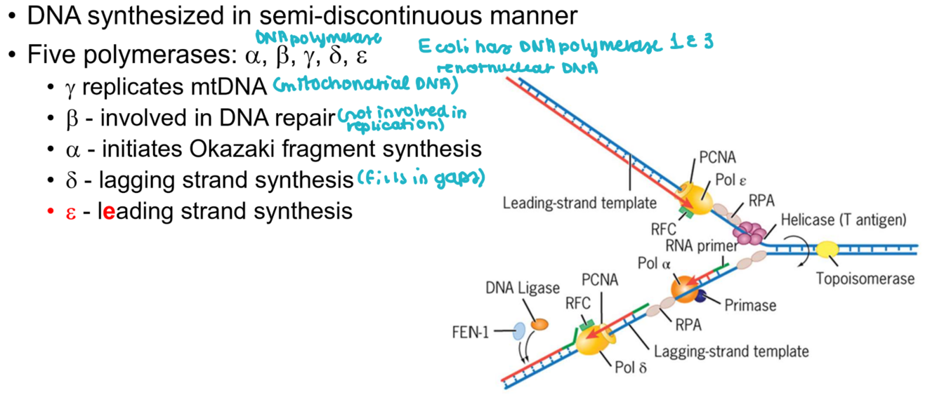 5’ to 3’ polymerase (synthesize in between okazaki fragments