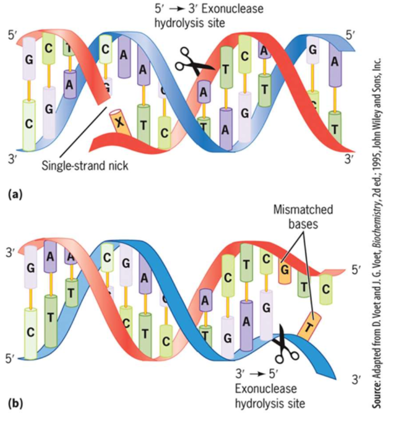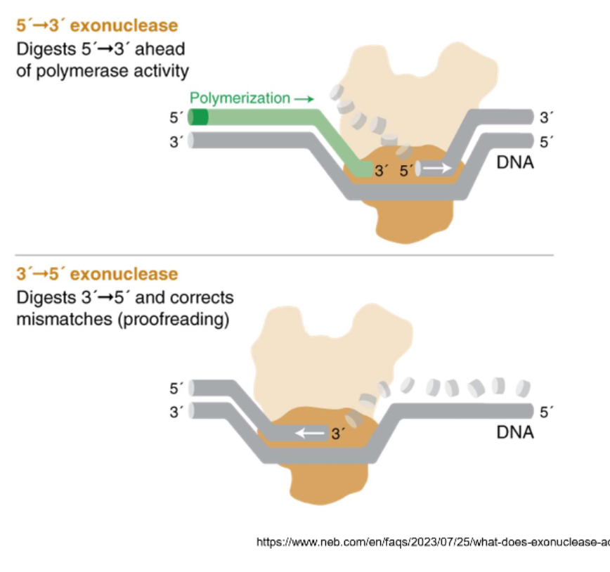 5’ to 3’ exonucleases (remove/cut nucleotides)