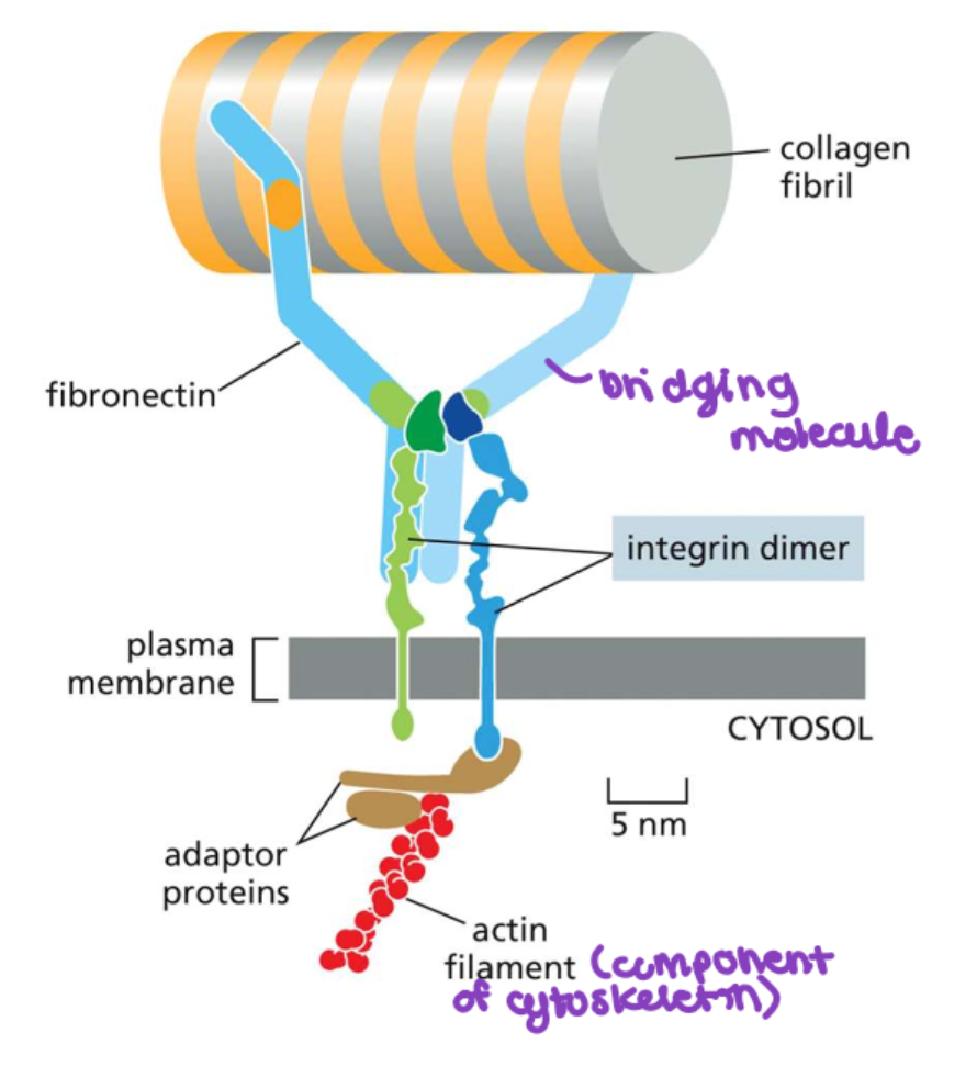 -cell surface receptors can bind to ECM components such as fibronectin, laminin, proteoglycans, and collagen (integrins interact with these)
