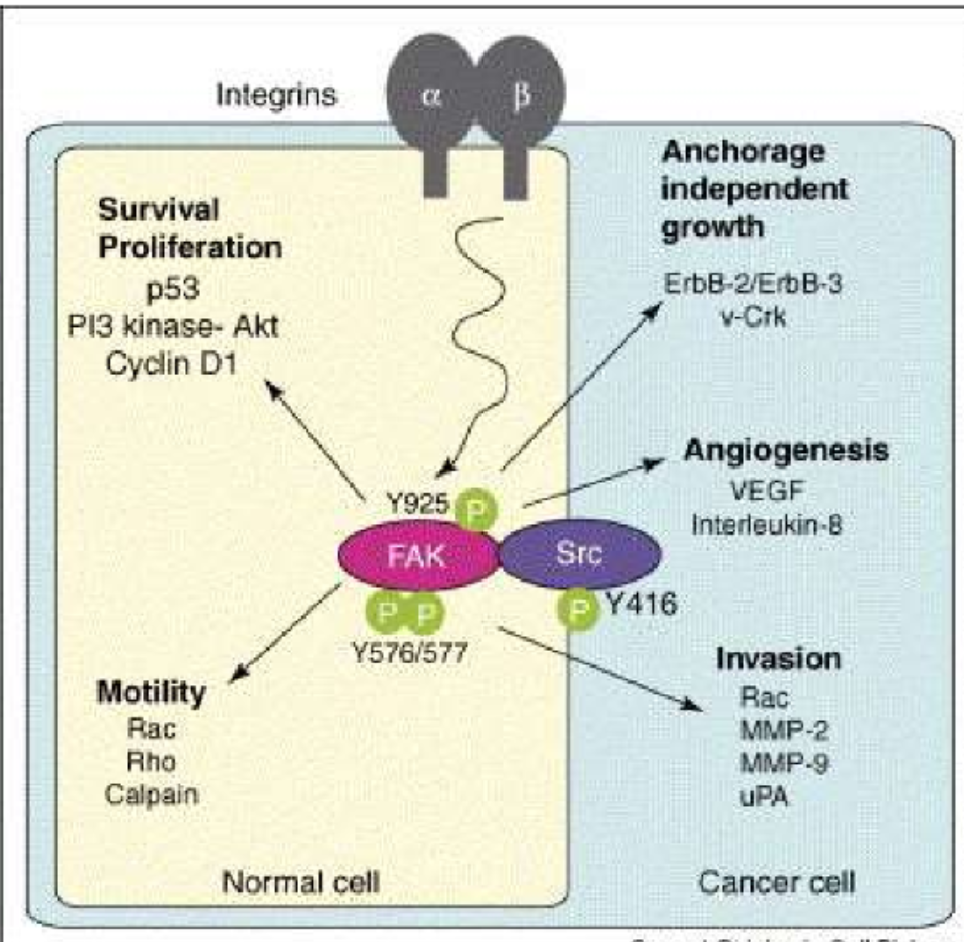 -malignant: can grow in suspension->integrin independent (dont need binding to basement membrane, so why they can move and metastasize easily)
