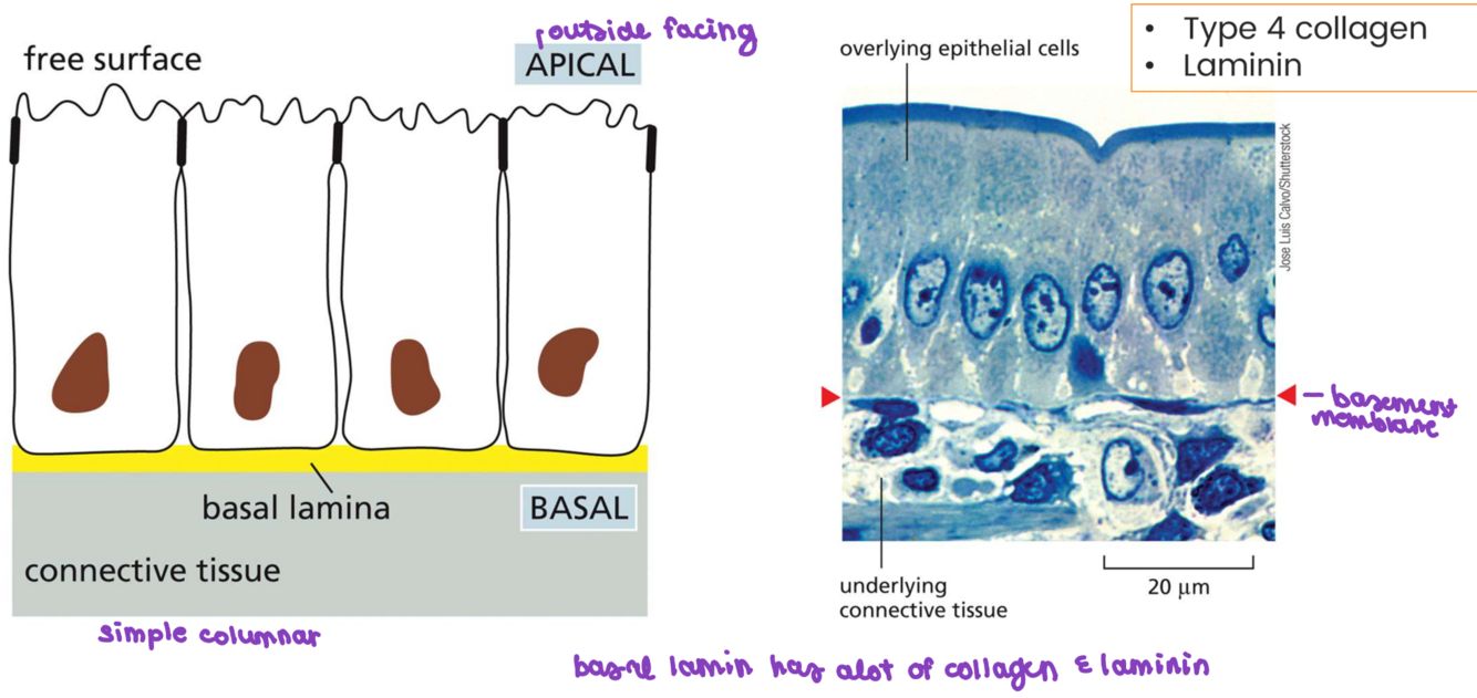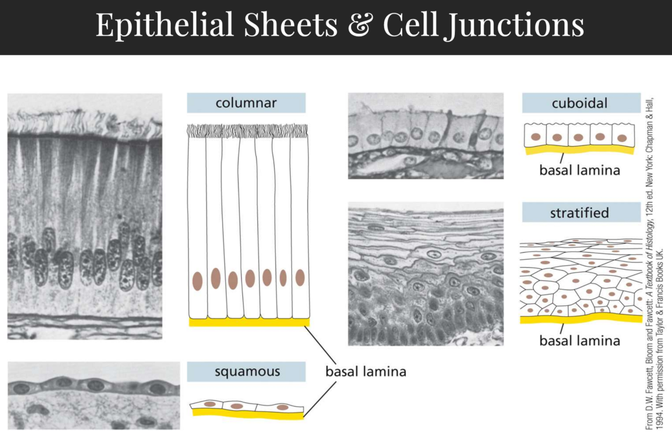epithelial sheets are polarized (diff parts have diff functions) and rest on a basal lamina