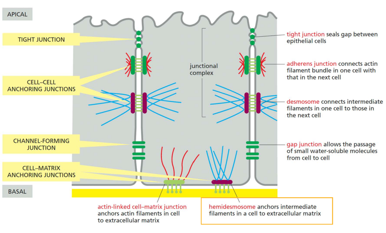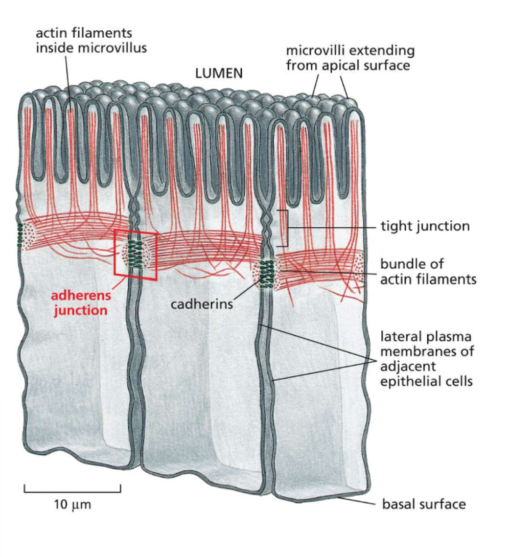 cytoskeleton-linked junctions bind epithelial cells to each other