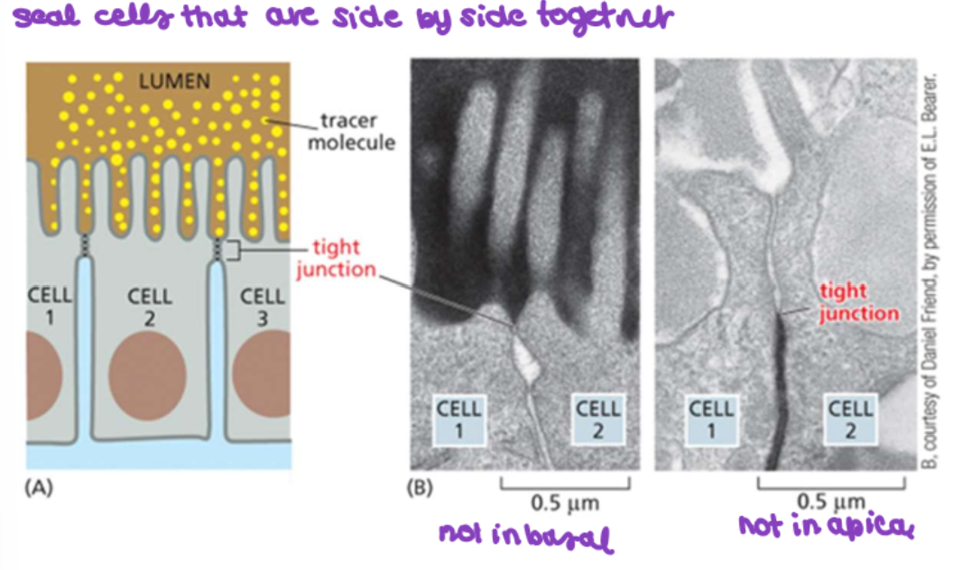 -establishes the polarity of epithelial cells and serve as a barrier limiting invasion of epithelial tissue into underlying tissues