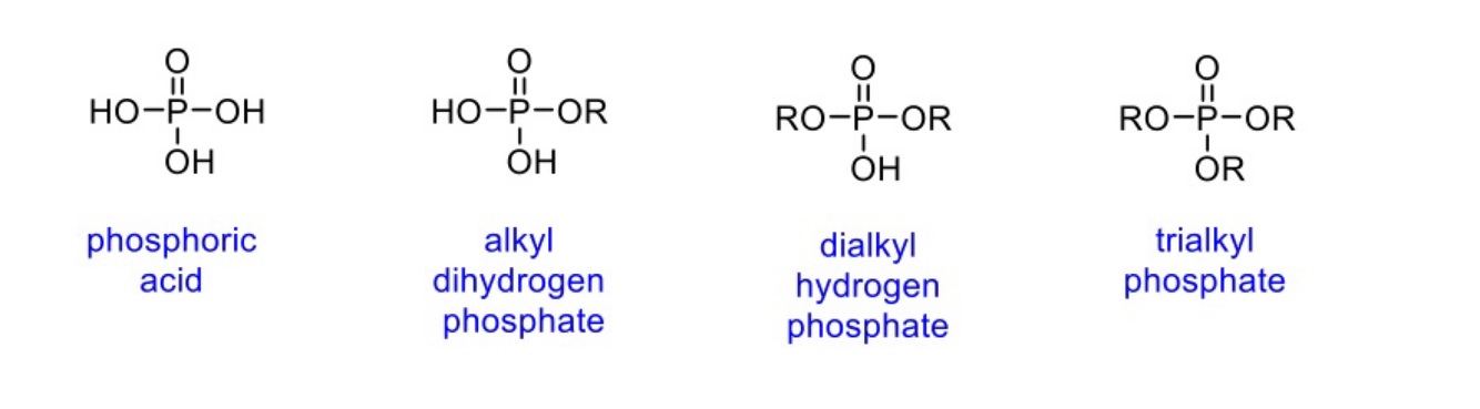 H3PO4 forms a series of phosphate esters where the OH groups are successively replaces by OR groups from alcohols