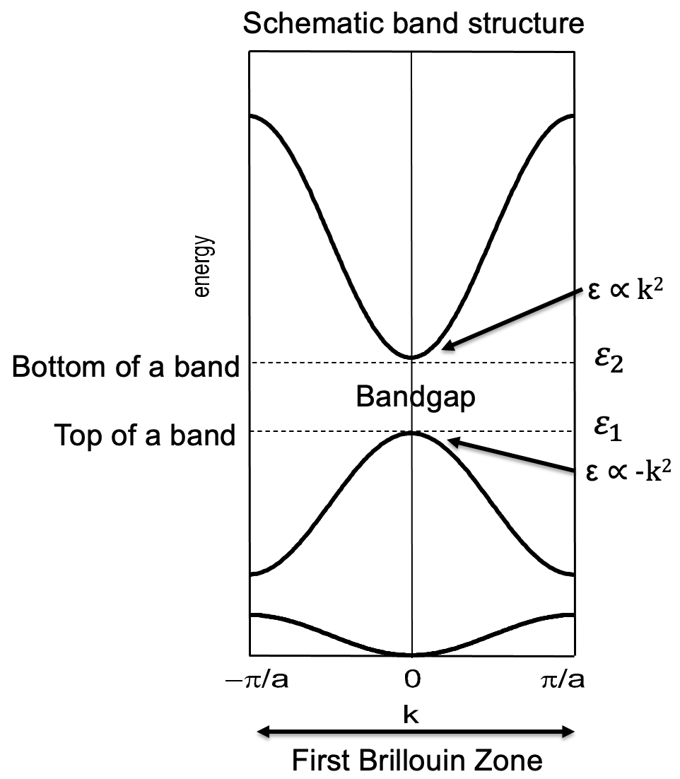 In the case of a nearly filled band with n empty electron states, this is equivalent to n hole states with a positive charge and a positive effective mass.