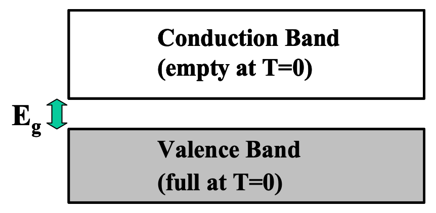 Are the valence and conduction bands filled for semiconductors at T = 0?
