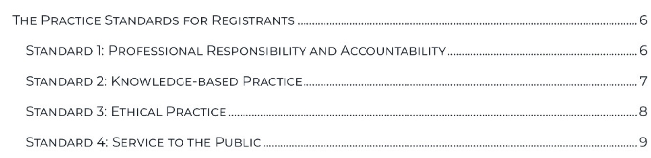 -sets out standards for colleges for registration, continuing competance, complaints and establishes a board that advises the minister