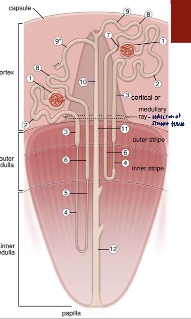 Medulla= renal pyramids + renal columns