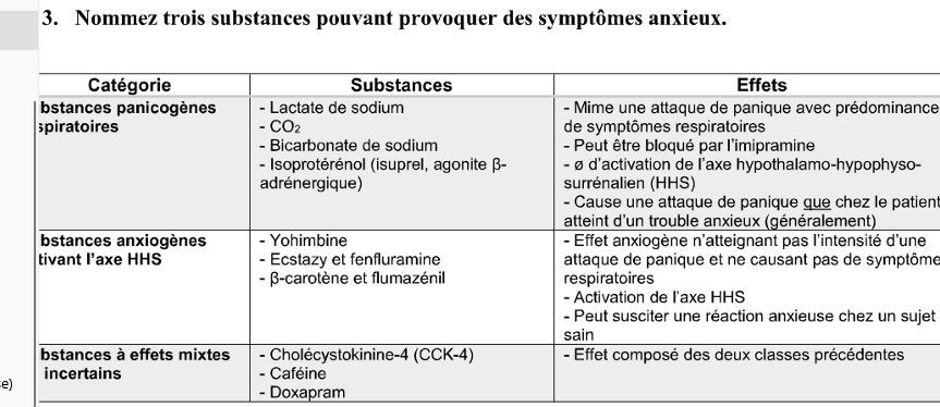 il existe trois catégories de substance pouvant provoqué des ymptomes anxieux
