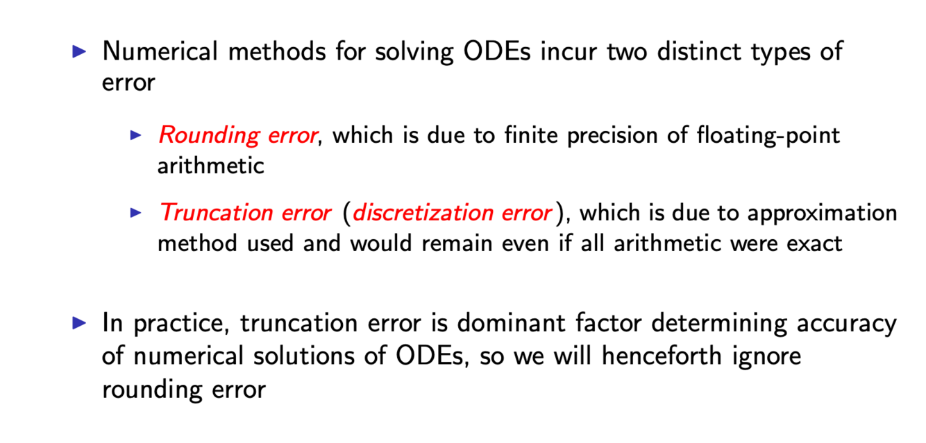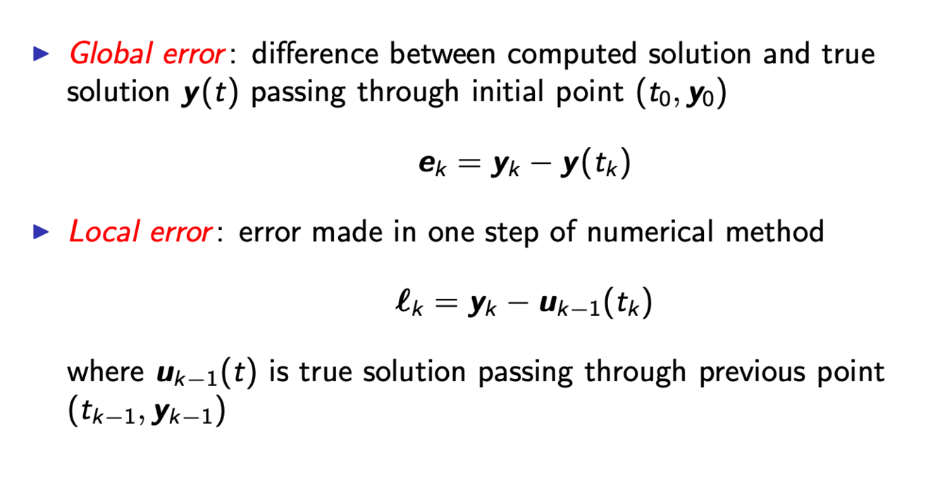 What are the two types of errors for numerical solutions of ODEs?