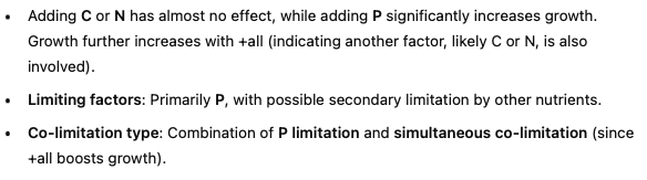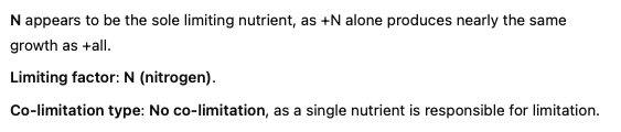Growth is limited by the nutrient present in the lowest concentration relative to requirements.