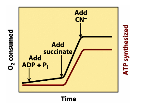 Adding succinate first leads to no O2 consumption.
