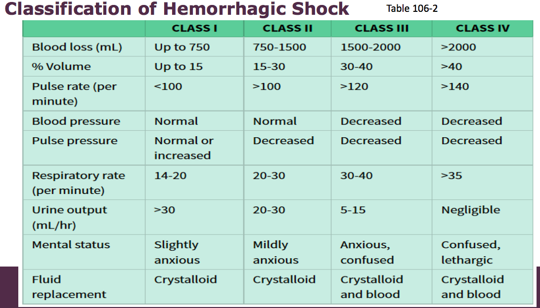 How does the pulse rate, BP, and pulse pressure change as you move from class I to class IV criteria of hemorrhagic shock?