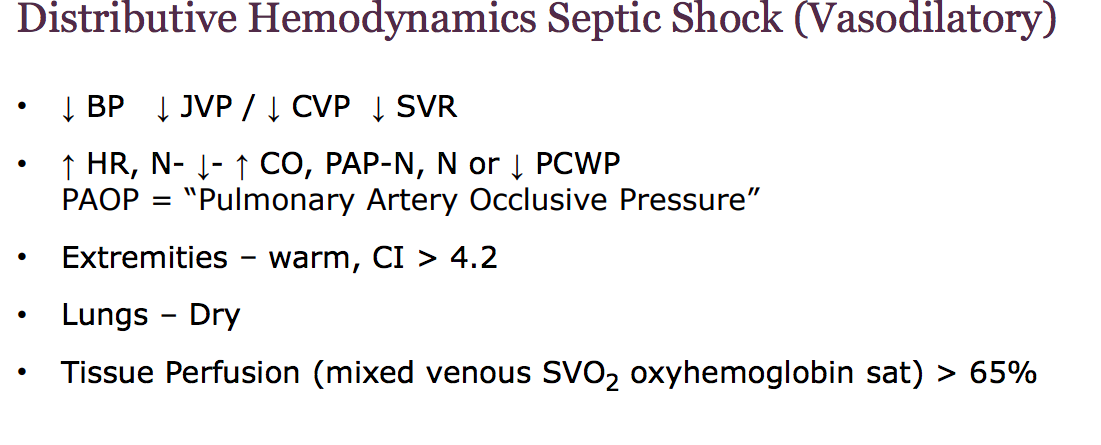 What are 4 signs/sx’s of sepsis (distributive shock)?