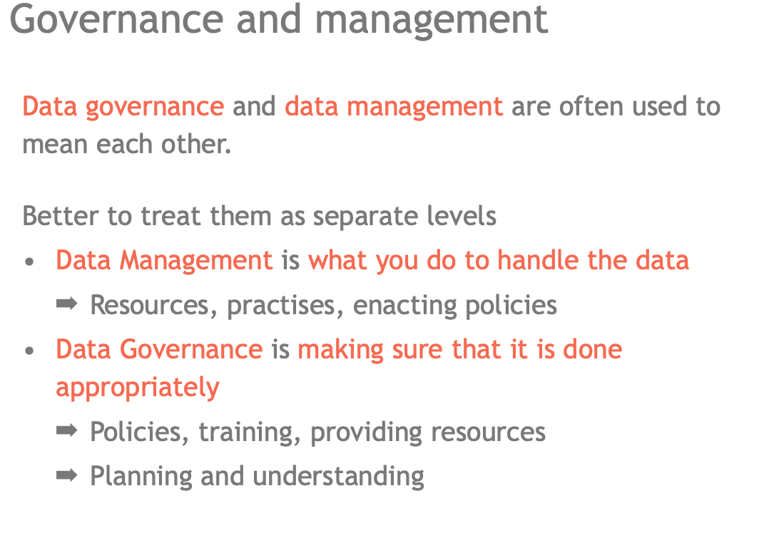 Explain data management and data governance