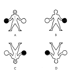 Left and the right hemisphere could have differential involvement in mental transformation operations dependent on the type of stimuli used → Objects (external) or body parts