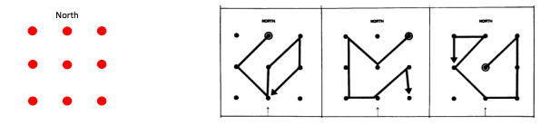 * Large paper on the floor with 9 dots (North is identified)