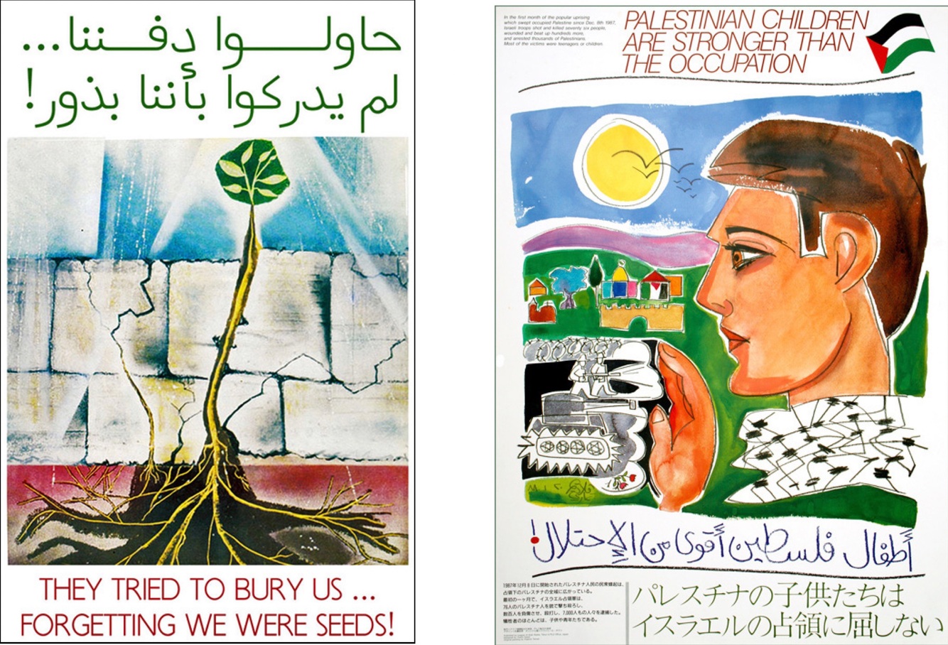His painting “Palestine on a cross” and his powerful depictions of Palestinian life, history, and ongoing struggle.