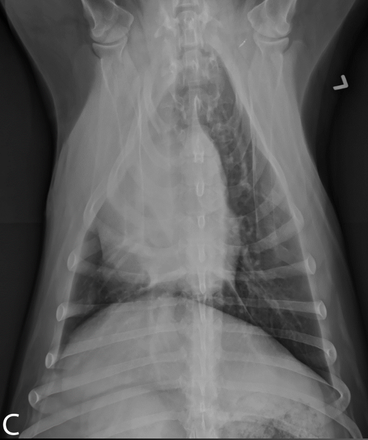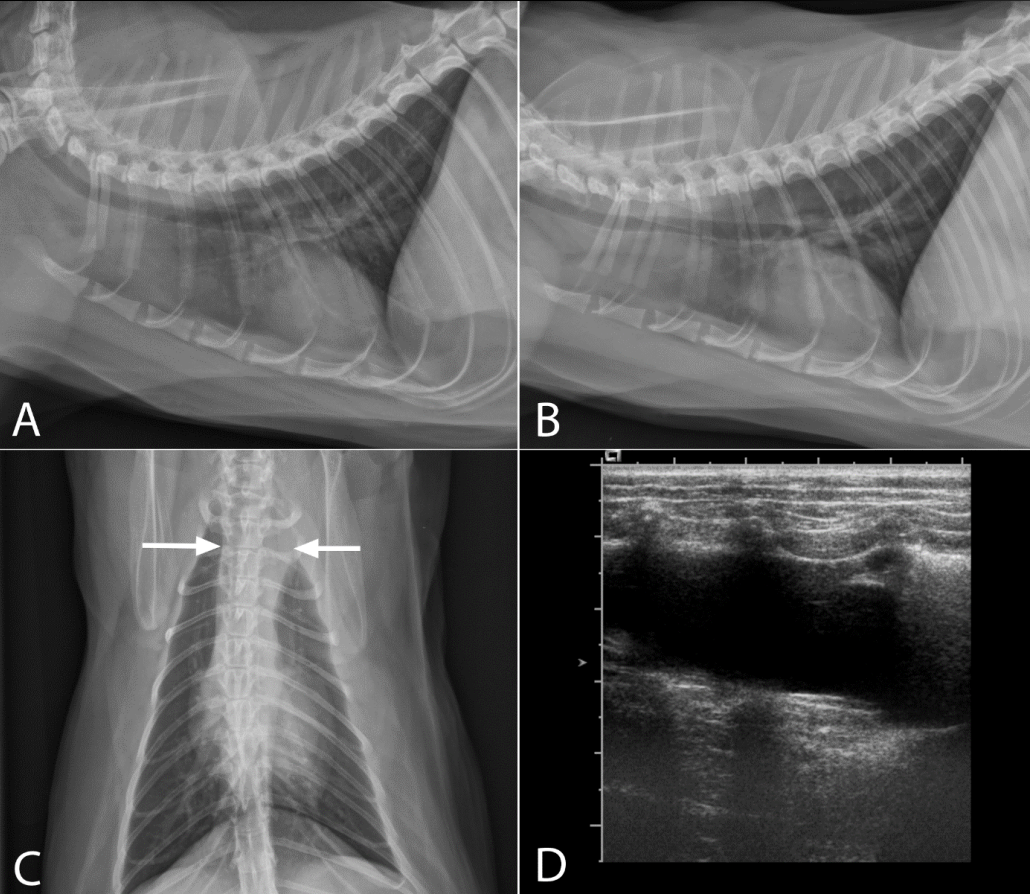 What are the differentials for craniodorsal (dorsal to trachea) mediastinal masses?