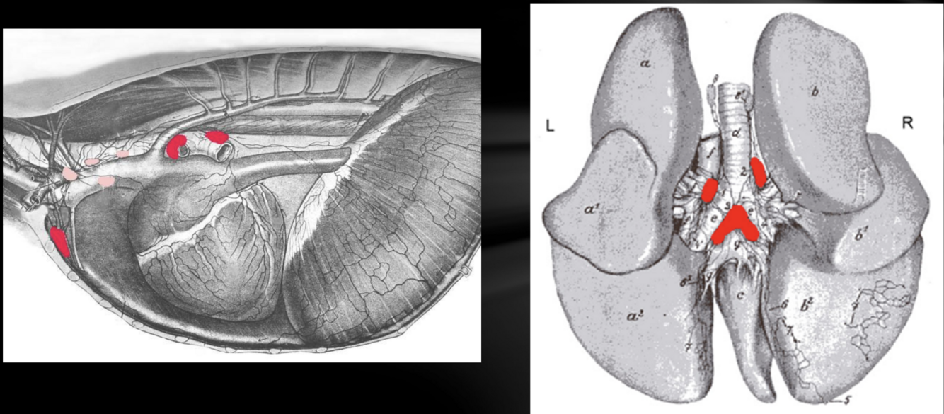 -very large mediastinal lymph nodes can be indistinguishable from other mediastinal masses