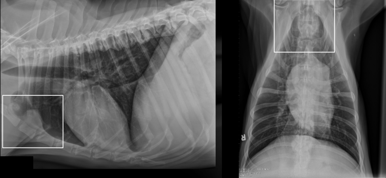 What are the differentials for craniodorsal (ventral to trachea) mediastinal masses?