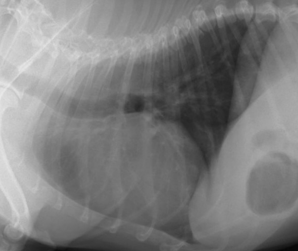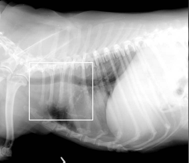 How can fat in the mediastinum be distinguished from a mass, such as in this image?