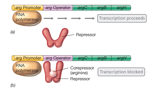 2) Repressor proteins stop gene expression by preventing RNA poly core enzyme from recognizing and binding to a promoter or by blocking its movement down the DNA.