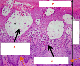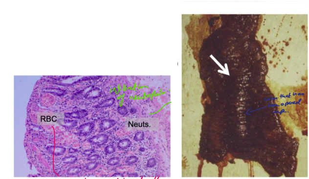 Full thickness loss of mucosal surface or epidermis. Caused by the inflammation and shedding of necrotic tissue.