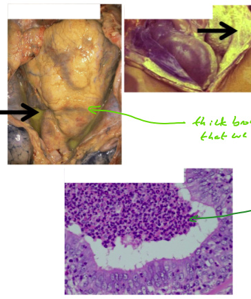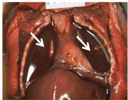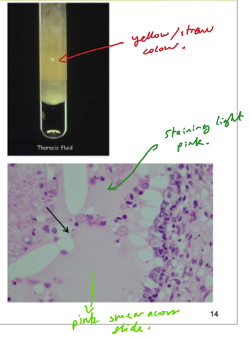 b. Compare the colour of the effusion to a sero-anginous effusion