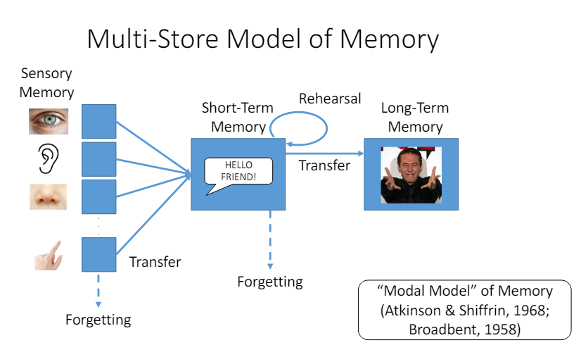 The Multi-Store Model of Memory includes three main components: