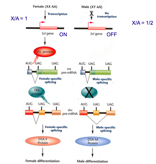 -in sex determination in drosphila- associated with differential splicing in the pathway