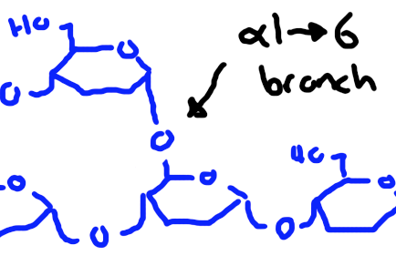 convers α1,4 branching to α1,6 linkage creating branching, which leads to efficiency in glucose release