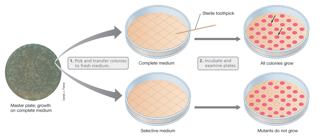 1) We can look for colonies that do not grow. Ex: screening a bacterial culture for a specific kind of nutritional auxotroph.