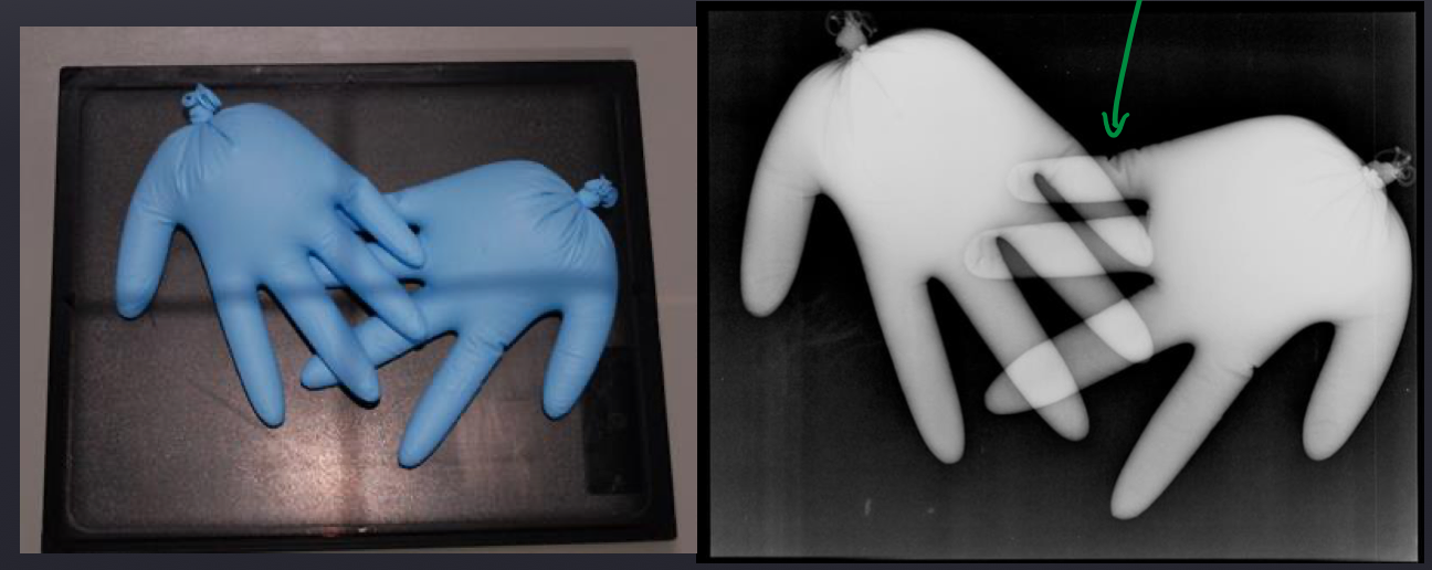 Opacities are added together. Film density = sum of all superimposed structures are added at that point.