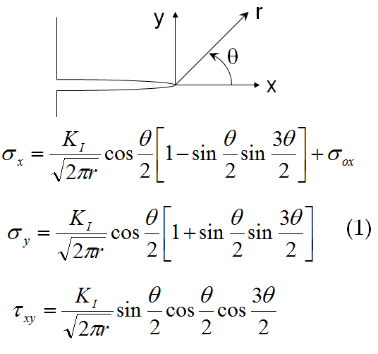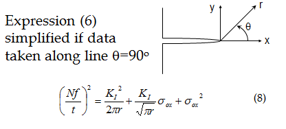 Using (6), (7) with KII =0, possible to find KI and sigmaox in terms of rm, qm and Nm