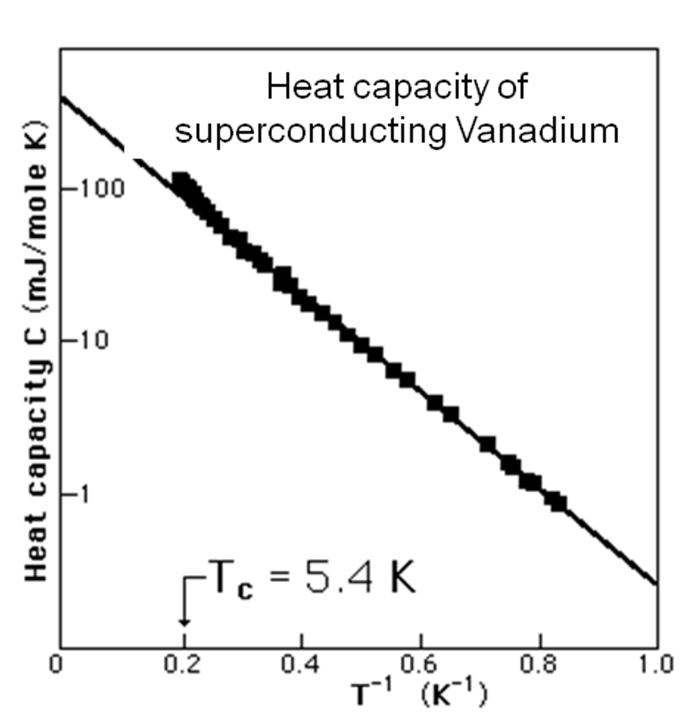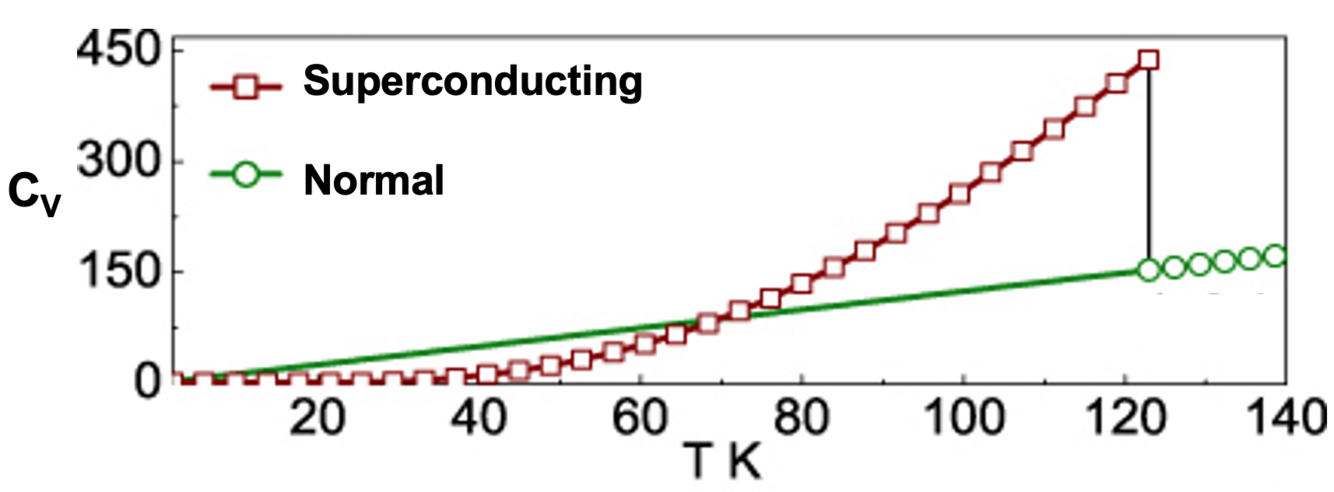 Describe the graph of specific heat against temperature for a superconducting and a normal state